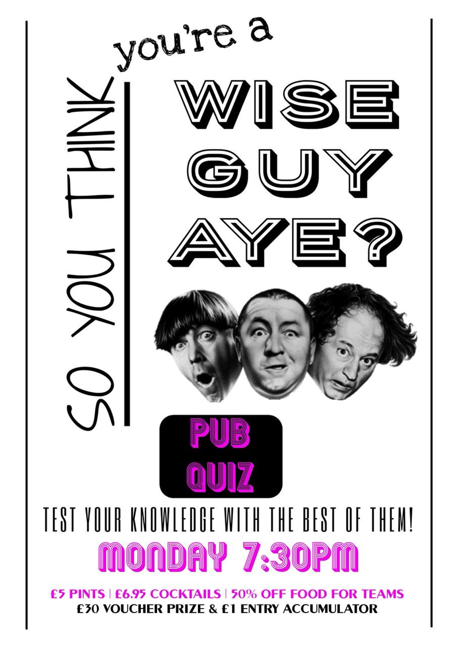 MONDAY = 50% off food for pub quiz teams